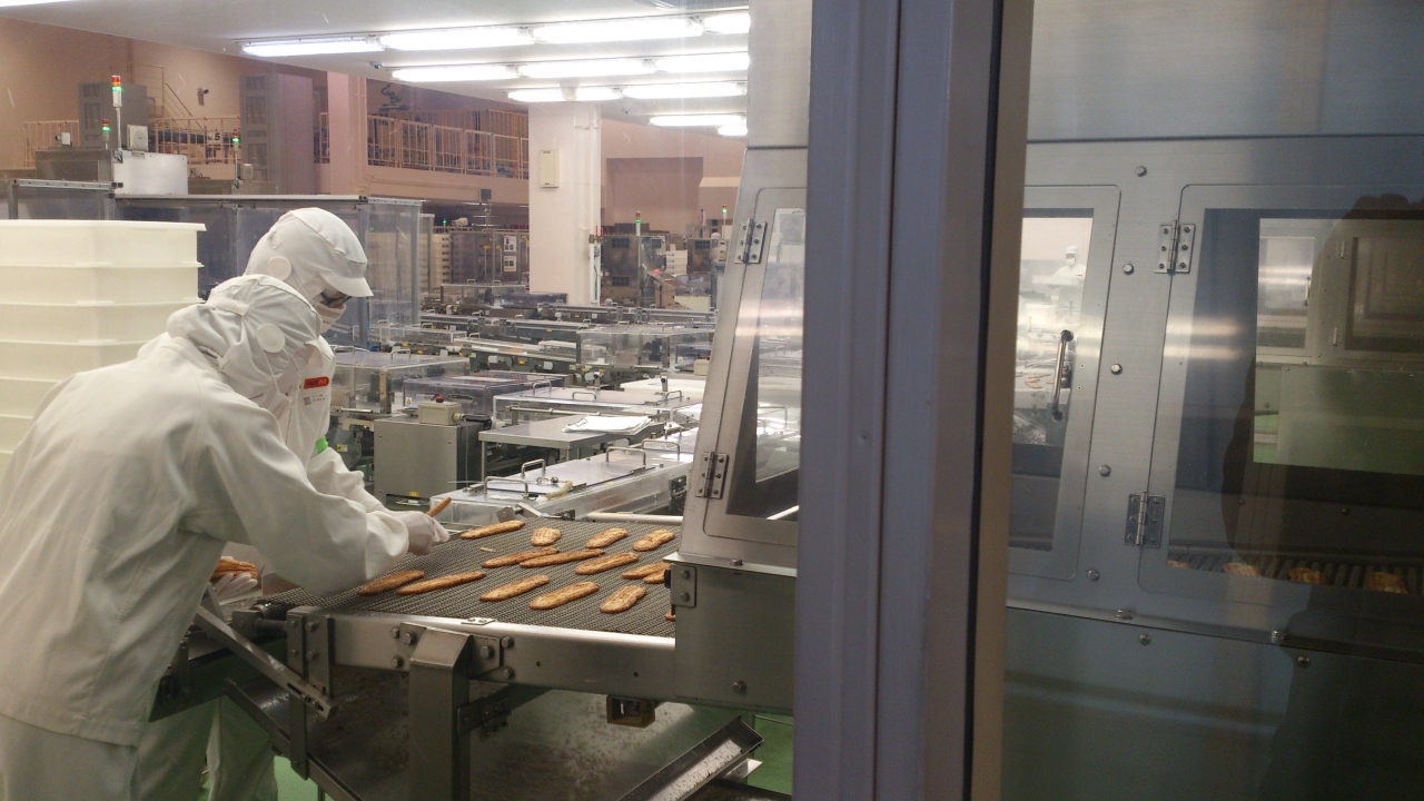「焼き」以後の工程がガラス越しに見学できます。うなぎパイの焼きあがりの形状の検査に結構人手がかかっているのを見て取れます。焼きの前の工程は映像で紹介されています。美味しいスイーツが供されるカフェや売店も併設されており、おみやげにミニサイズ3枚入りがいただけます。とても楽しく見学できました。