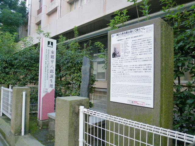 今日は鹿児島市内を散策しています。鹿児島市内には記念像や碑がたくさんあります。その中のひとつである「東郷平八郎誕生地碑」です。日本海軍の総指揮として、明治の日清日露戦争の勝利に大きく貢献され、日本の国際的地位を向上させています。「陸の大山 海の東郷」と呼ばれていますね。学校の塀の側に石碑は建っています。また、この加治屋町には、他に歴史上の人物の記念碑などありますのでセットで楽しんでください。この良き街を散策しましょう。