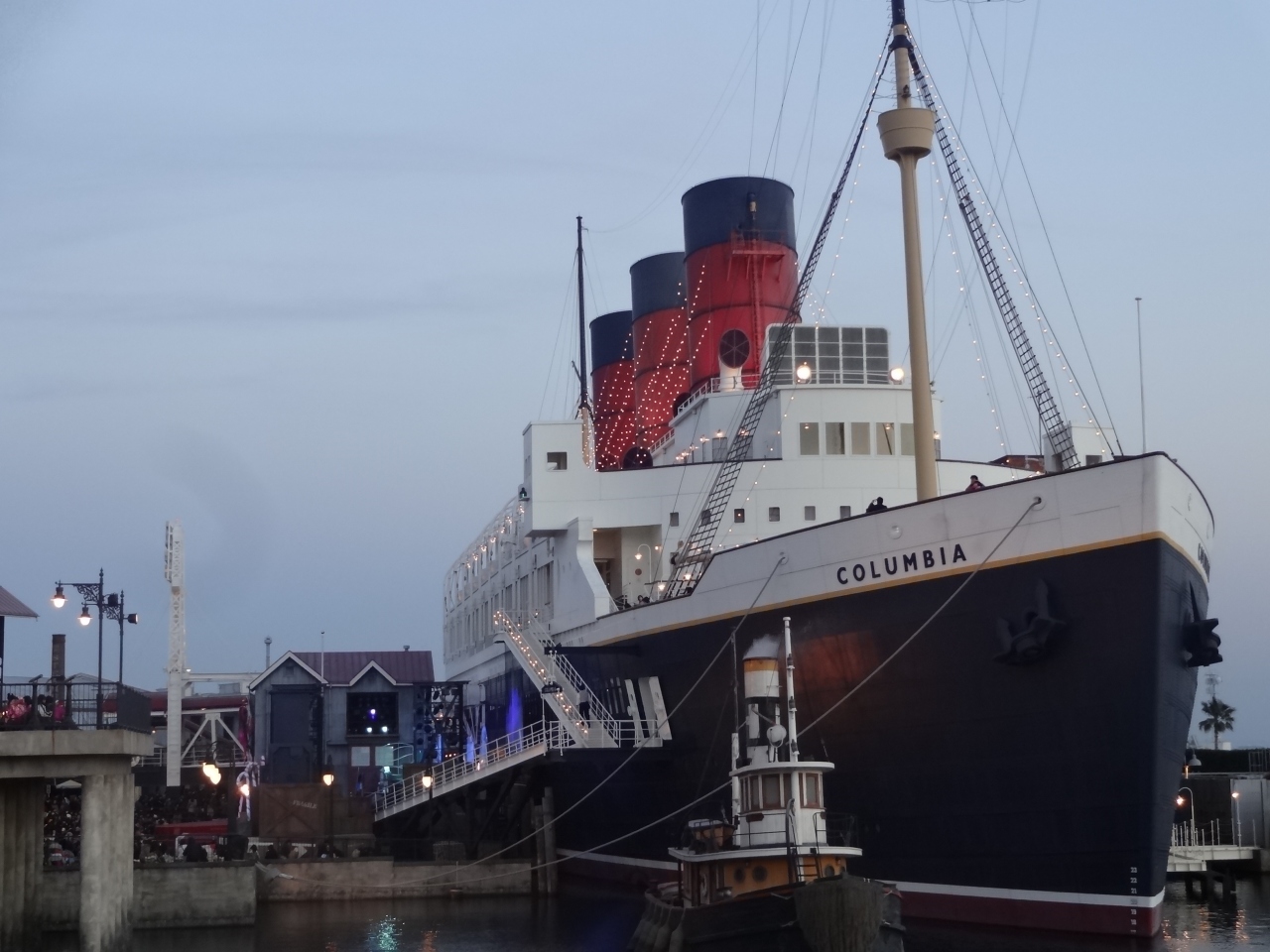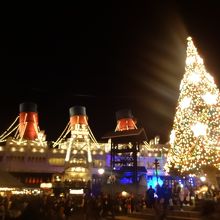 東京ディズニーシーのアメリカンウォーターフロントにある豪華客船で、これから処女航海に出るため停泊中です。