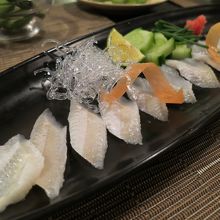 地元の素材を使った居酒屋で、牡蠣フライやあなごの刺身など