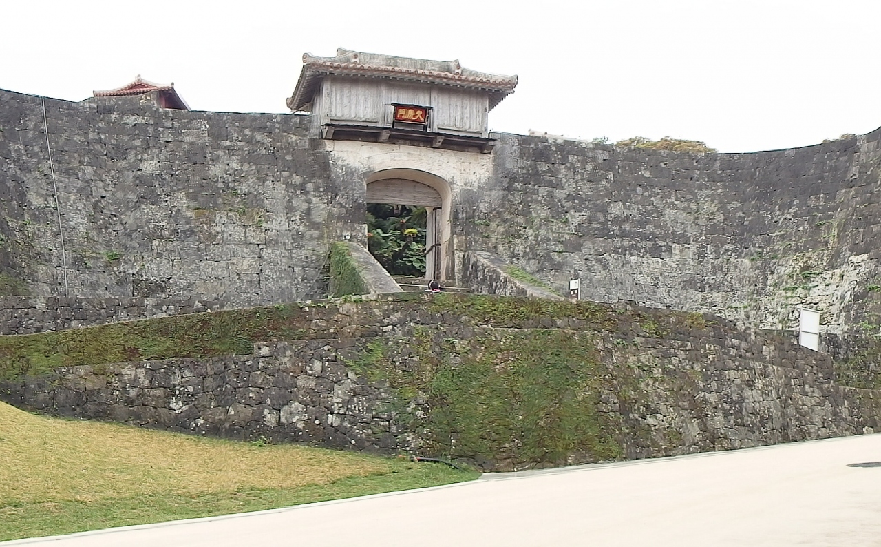 正門ではなく、もともとは女性が使用する通用門だったそうです。しかし、歓会門や瑞泉門が城壁の側面のスロープに作られているのに対して、この門は、城壁と直角に作られていて、そのぶん、堂々としている感じがしました。