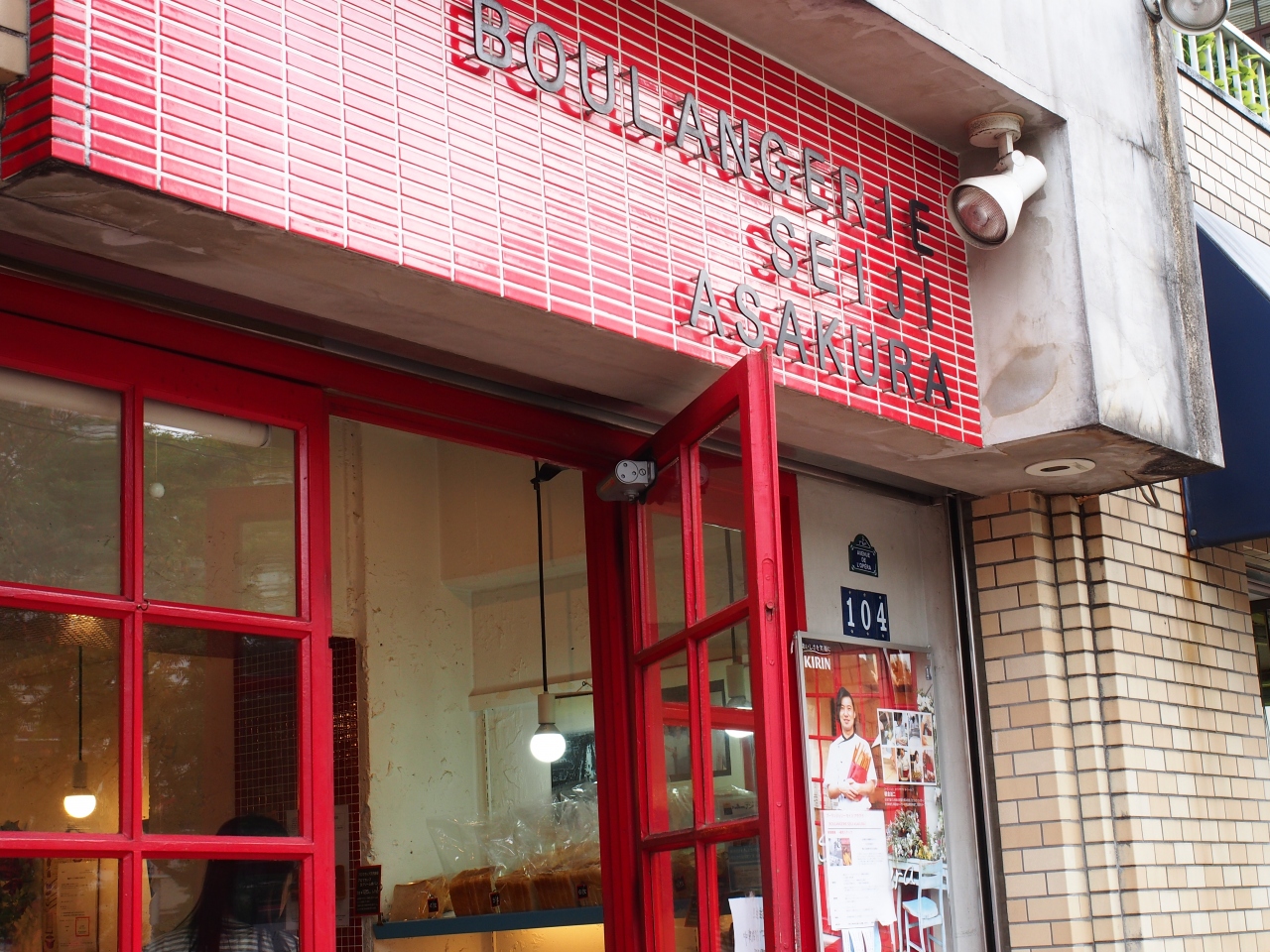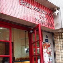 赤がポイントのおしゃれなパン屋さん