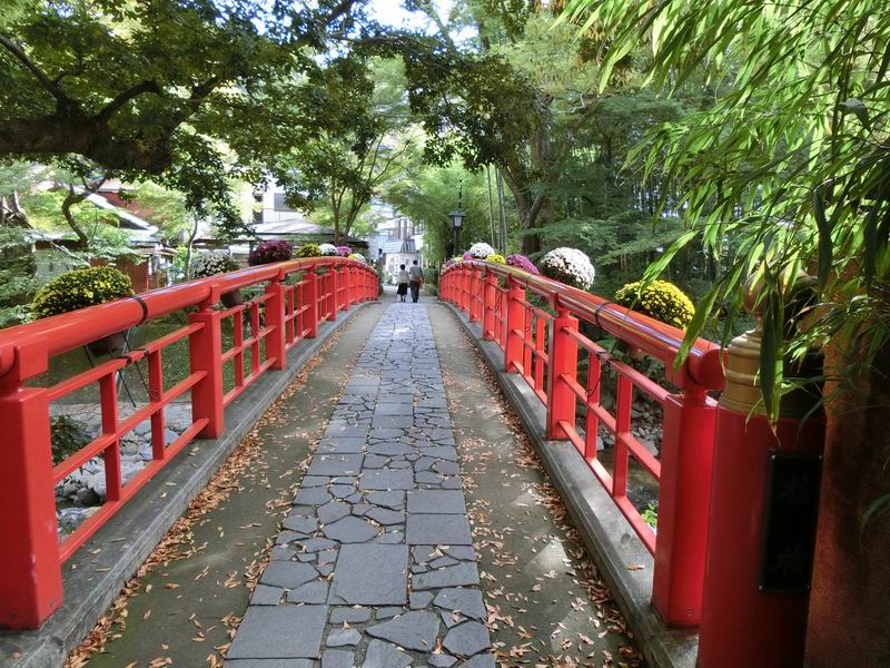 桂川(修善寺川)にかかる5つの橋で、上流から滝下橋、楓橋、桂橋、虎渓橋、渡月橋となっています。「あこがれ橋」「結ばれ橋」などそれぞれ別名が付いています。地味な色をした滝下橋以外は赤い橋で、緑の中によく映えていました。修善寺を紹介した写真でもよく見る風景ですね。願いをかけながら渡ると恋が成就するとのことです。