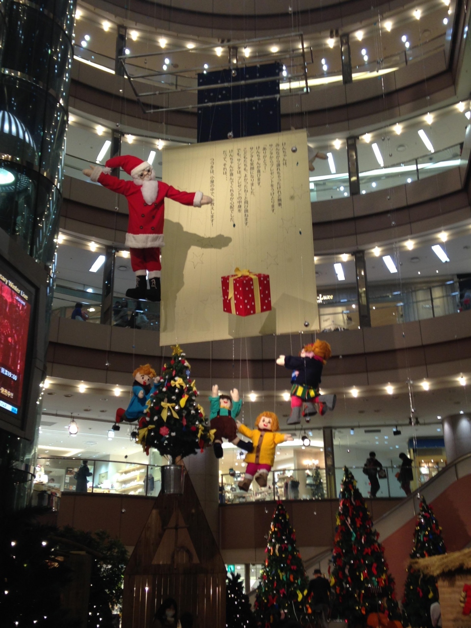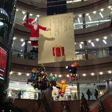 イムズのクリスマスは、4つの小さな小屋を巡りながら、小屋の中に展示されてある物語を読んでいきます。一番奥には、3本のツリーが飾られ、靴下のオーナメントが飾られています。靴下の中に、メッセージを入れることができるようになっていました。イルミネーションのような煌びやかさはありませんが、温かい気持ちになれる空間でした。