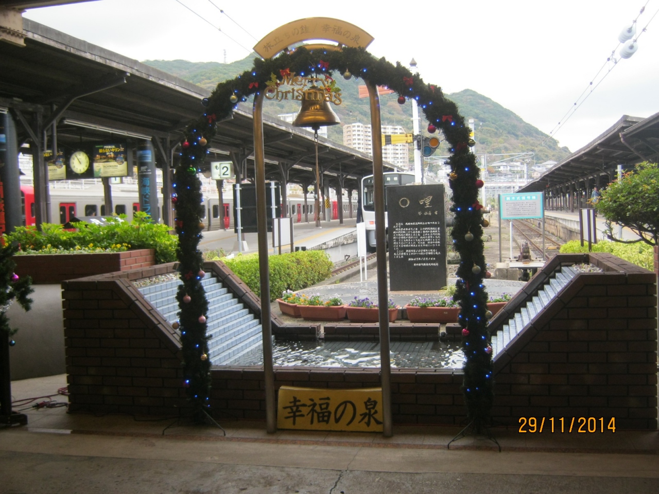大正3年(1914年)に建てられた木造2階だてのルネッサンス式の駅舎です。残念ながら今リフーム中で外観は見れませんでした。でもこの門司港駅はいろいろな見るものを持っています。0哩標、幸福の泉、幸福の手水鉢、幸福の水などが駅の構内外にあります。待合室もレトロです。駅全体が幸福な気持ちにさせてくれます。