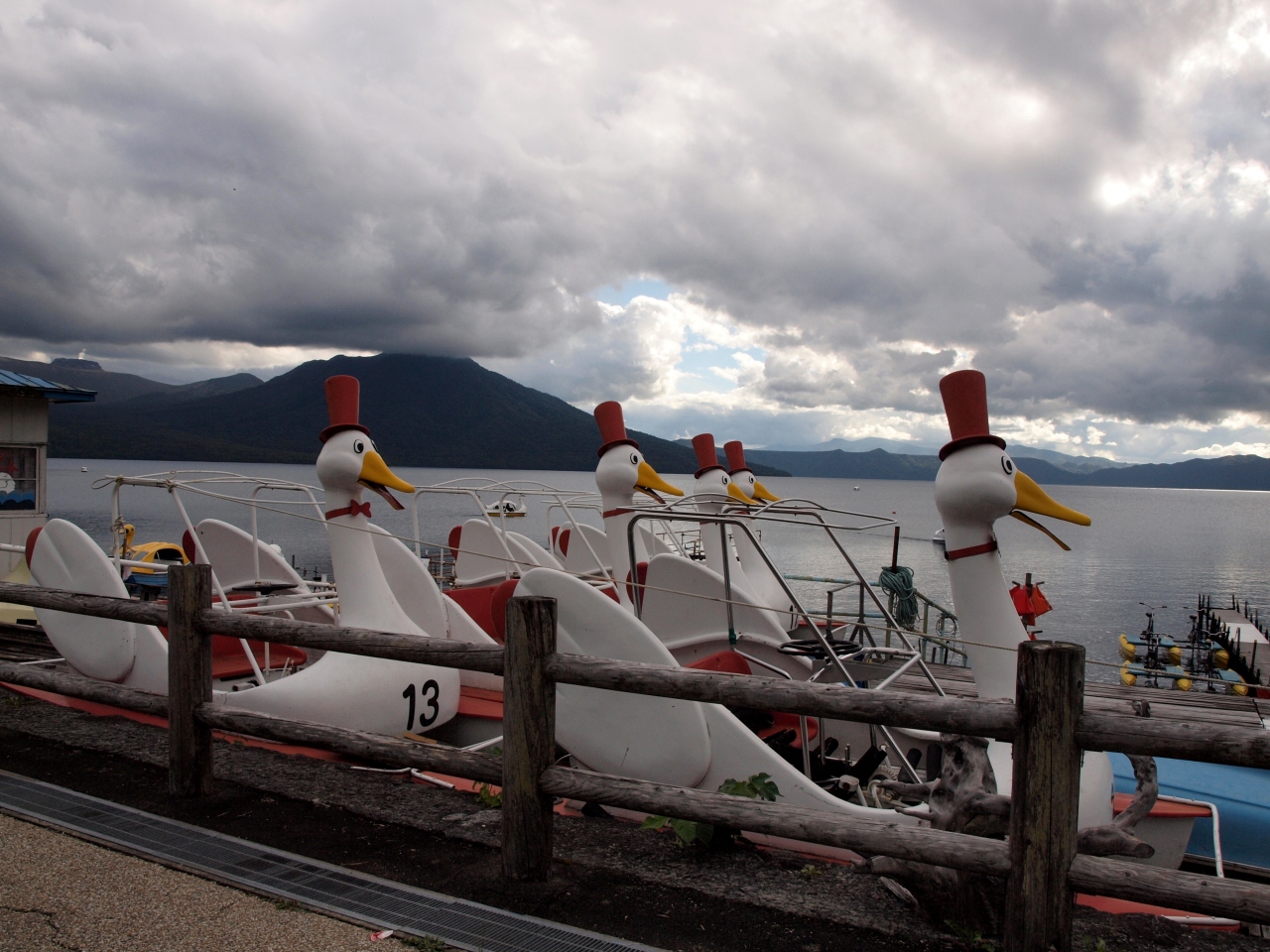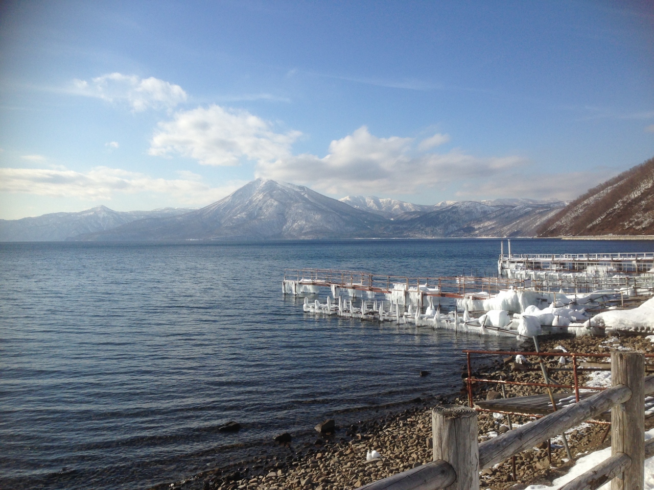 この湖は周りを樽前山、恵庭岳、紋別岳に囲まれ、透明度の高いことで有名です。
