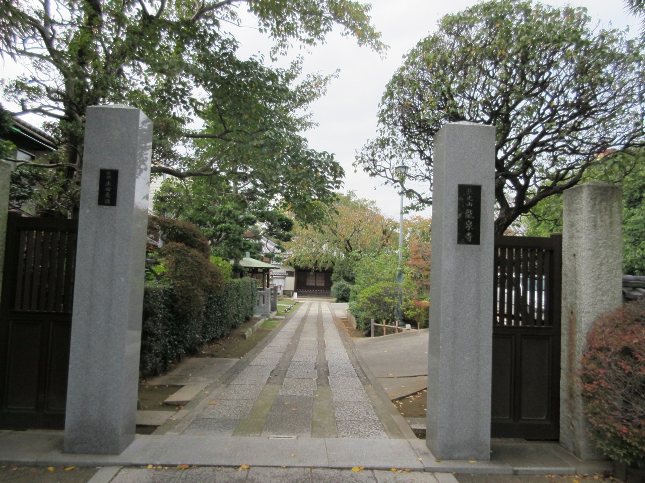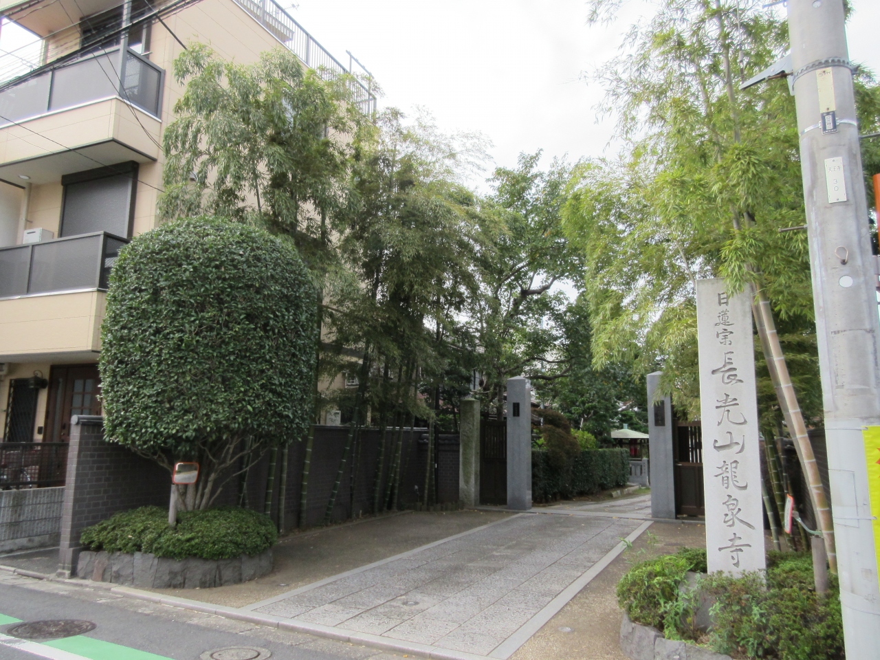 JR日暮里駅からすぐ、朝倉彫塑館のそばにある日蓮宗の寺院です。1622年に下谷に創建されたお寺で1709年のこの地に移転したそうです。境内には、本堂の他に供養塔、観世音菩薩の祀られています。静かに、厳かに佇んでいます。