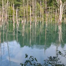 青い池。一度は行ってみたかった所です。人口の池ですが、本当に青い。周りの木々が水面に映ってとてもきれいでした。外国人用のガイドブックにも載っているのでしょうか?中国人がとても多くてビックリしました。。。