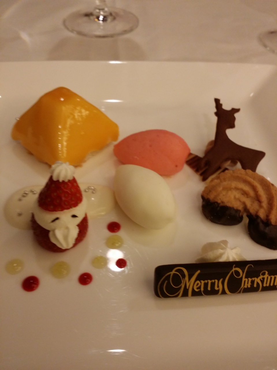 クリスマス色のコースがみためも味も最高です。ワインも結構揃えてあります。