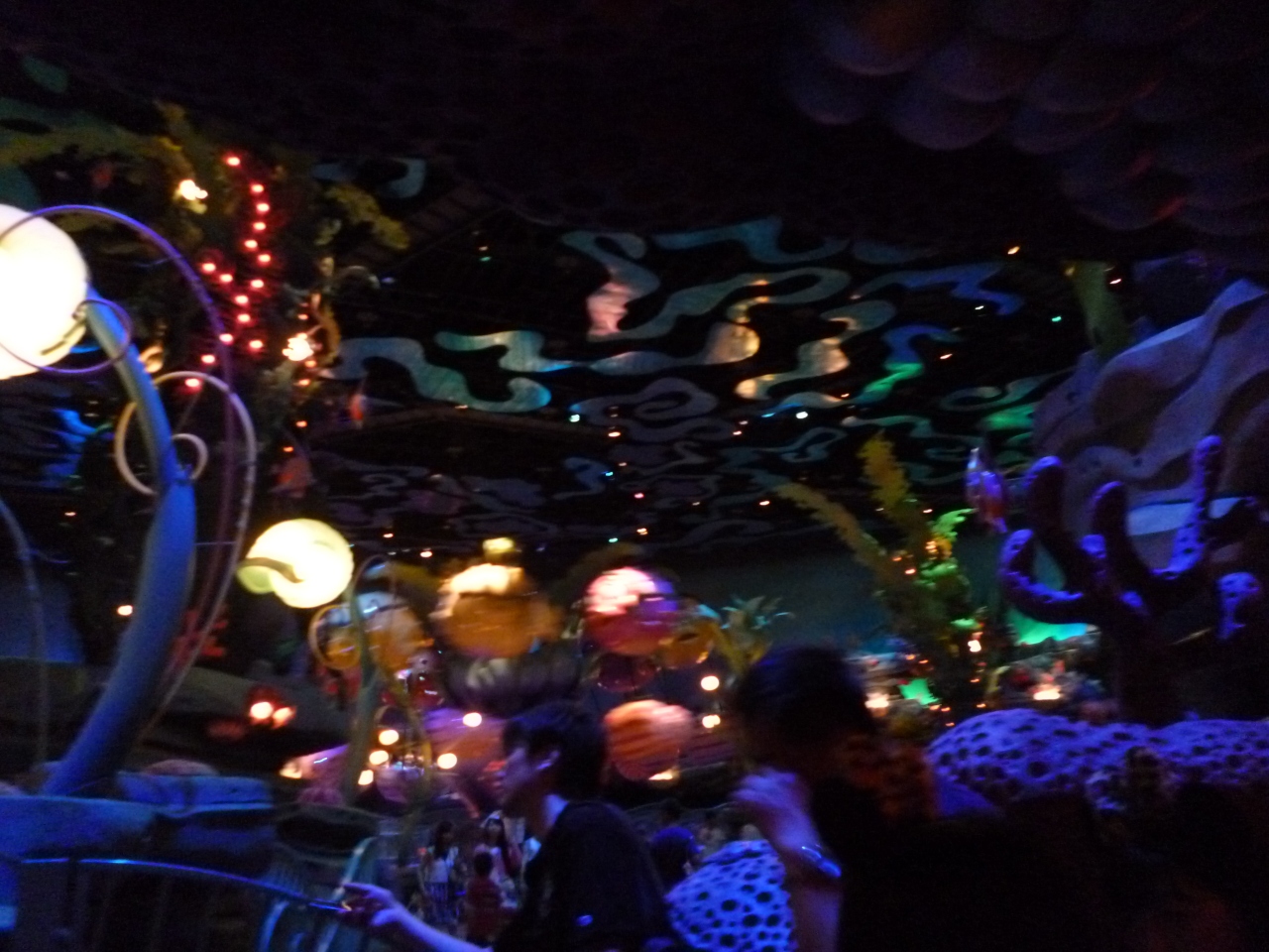 絶叫系はムリっていう人にはお勧めです。建物内なので夏は涼しく冬は暖かくて待ち時間も30分程度だったので快適でした。まわえるカップの乗り物は、ゆるやかな回りで具合も悪くなりません。海の中にいるようで癒される空間です。