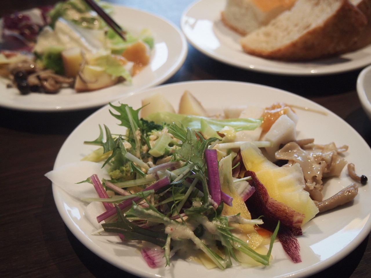 食事は2階のレストランで、メインのお料理とパンとサラダ食べ放題です。