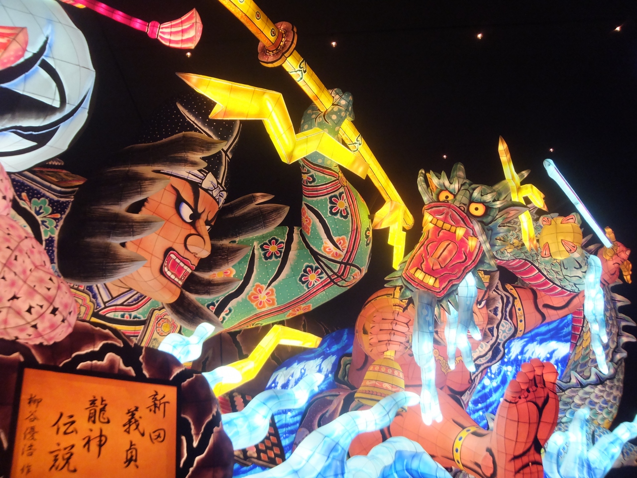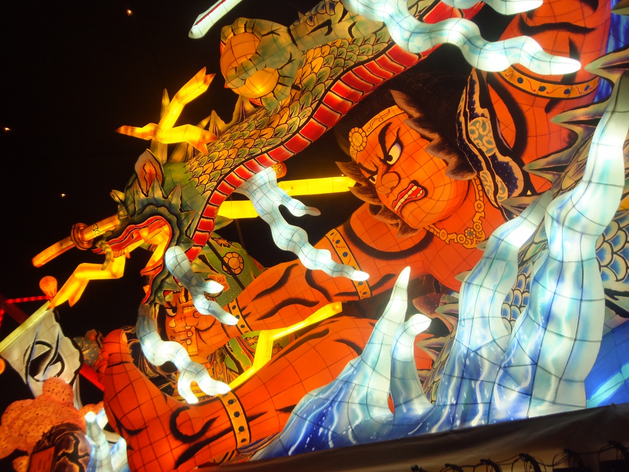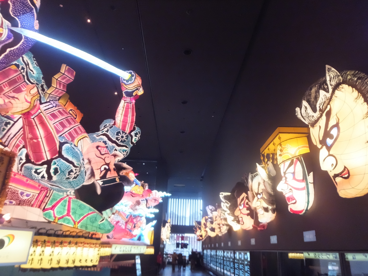 過去、優秀制作者賞などを受賞してきたねぶたの傑作を間近で見ることができます。館内は思いのほか大きく、暗い館内にこうこうと灯った迫力のあるねぶたが何台も並びます。祭りの時と違って、真下まで近づいて落ち着いてみることができます。ねぶたの博物館といったところでしょうか。