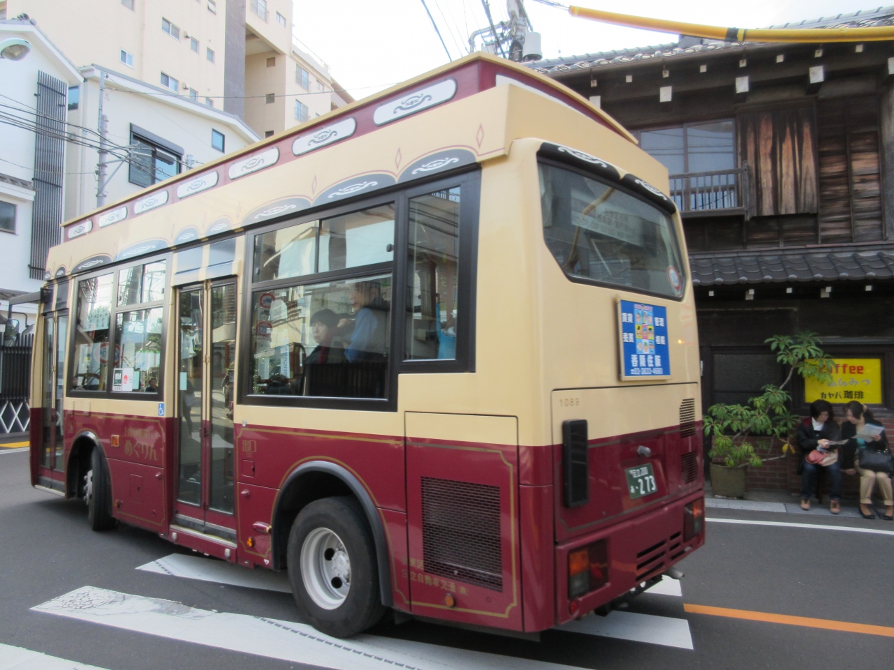 台東区内を循環しているコミュニティバス。「北めぐりん」「南めぐりん」「東西めぐりん」の3系統があり、15分間隔で運転されています。運行の頻度が多いし、1乗車100円とは格別です。1日乗車券300円もあります。