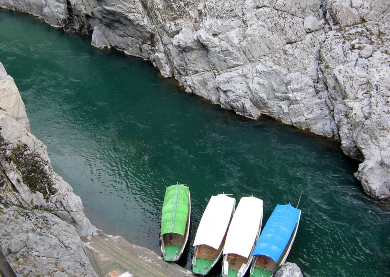 大歩危 小歩危の道路沿いにはいわゆるドライブインと言われる昭和のテイストを色濃く残したレストランがいくつか残っているのですが、その一つからは川下りの遊覧観光もできるようになっています。これは健康スリルもありお勧めです。