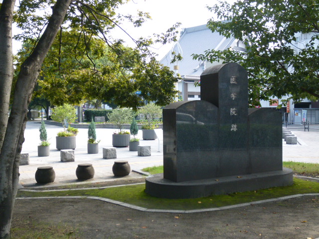 城山付近をぐるっと散策し中央公園で休憩し、天文館付近へ戻ろうとしたら、この公園の南方向の角に「医学院跡」がありました。とりあえずカメラして後で調べたら力強い鹿児島を知ることができました。ここに1773年、薩摩藩の造士館と武道場の演武館が建設され、剣、弓、槍、馬、銃などの稽古が行われたようです。そしてその南に、医学を研究する医学院が作られたようです。うんん・・・勉強になります。是非立ち寄ってくださいね。