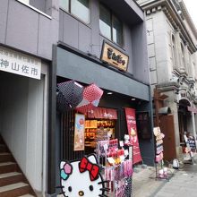 本川越駅から真北の方面に伸びる蔵造りの街並みには、外国人観光客も数多く訪れます。老舗店に交じって、突如現れるのが「葉朗彩々」で、漆黒の建物の前にはキティグッズであふれており、周囲のお店とのミスマッチが新鮮です。