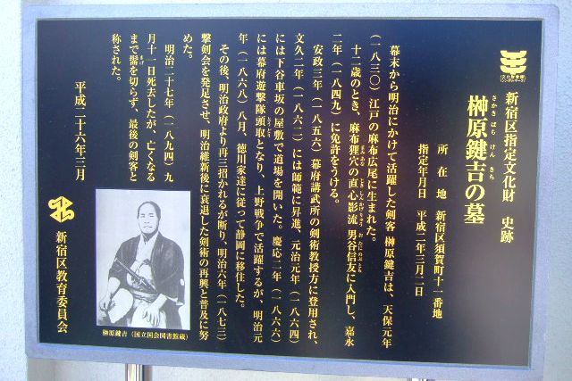 幕末から明治にかけて活躍した、最後の剣客榊原健吉の墓(新宿区指定文化財)があります。