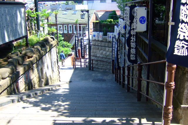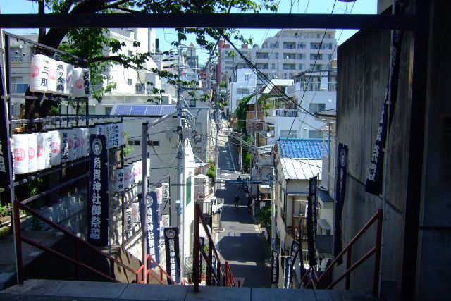 このあたりは、スリバチ凸凹地形散歩をするにも楽しいところだと思います。 (神社前の階段の先に東福院坂(天王坂)が見え、神社が高い台地の上に建てられていることがよく分かります。 須賀神社から対面、東福院の西側に真英寺があり、そこから見える 鮫河橋谷 さめがはしたに の風景は、スリバチビューポイントとなっている・・ というので、この後はそちらの方に向かいました。 ※スリバチに誘われて エピソード13 http://matogrosso.jp/suribachi/suribachi-13.html )