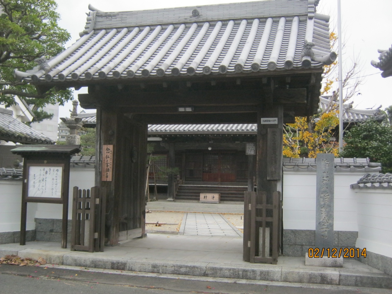 駅から近松寺に行く途中にあります。この寺の近くにはかつては名護屋門と言われる外門があったようです。この寺は狩野派の画家の「地獄極楽図」があります。公開は1年に1回8月16日のえんま祭のみです。門の脇に表示されています。また吉川英治の言葉が書かれています。