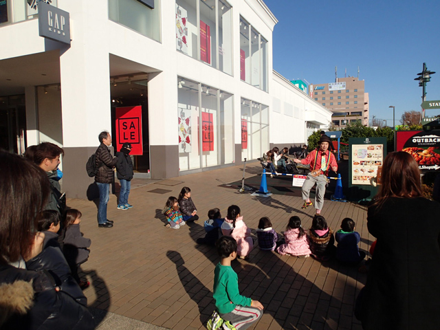土日だけでなく、平日もそこそこの人出で、お子様用に大道芸的な催しも行われています。