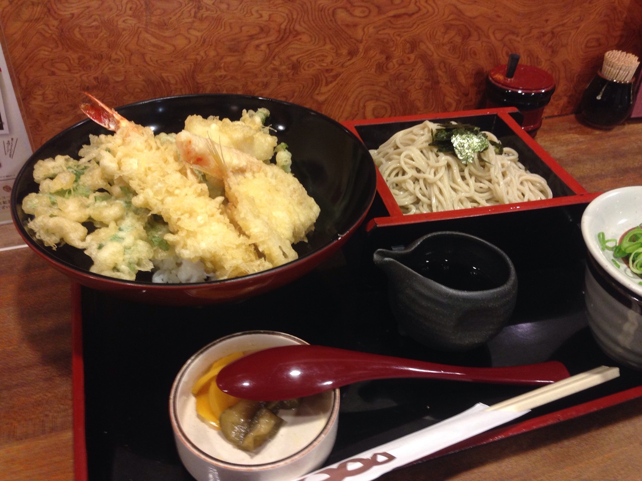 天丼と冷たい蕎麦のセット950円を頼みました。