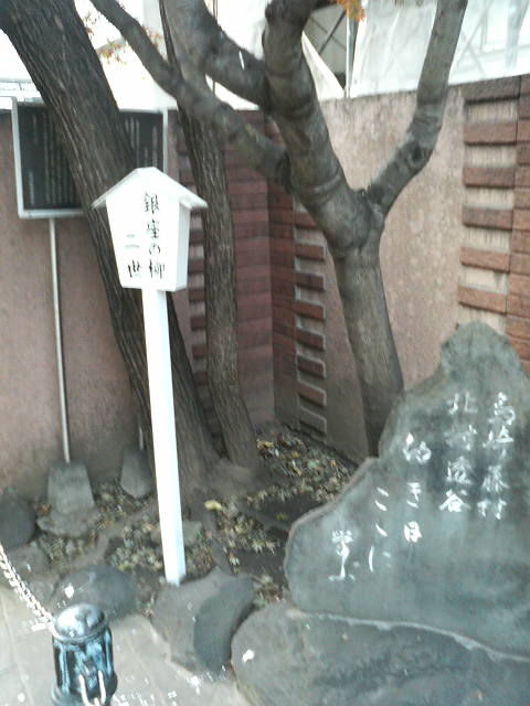 (黒い案内板がそばにありますが、銀座の柳の木に阻まれてほとんど読めませんでした)