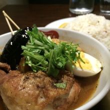 その上に素揚げした食材がのり、これが結構コッテリなのでバランスとってるのかも。