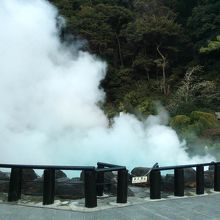 真っ白な煙は、冬なのでより一層の周囲をくもらせていますが、時よりコバルトブルーに色づく水面がとてもキレイに見ることが出来ました。