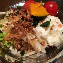 サラダブッフェは野菜以外にもフルーツとヨーグルトがあってちょっとしたデザートがあってよかったです。