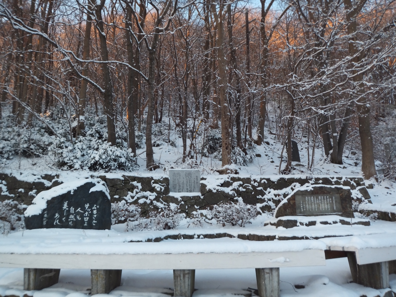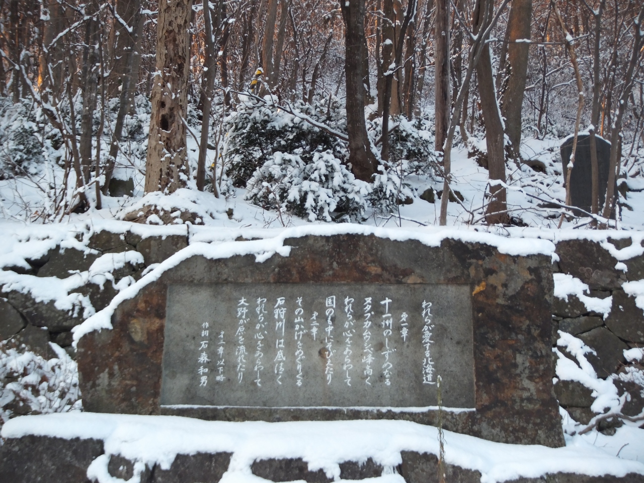 藻岩山ロープウェイの乗り場を横にそれ、少し上がったところにある文学碑の広場です。