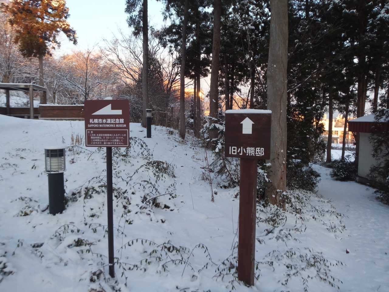 慈啓会病院の奥や、旭山記念公園から藻岩山山頂(標高531m)まで登る登山道がありますが、それに比べれば楽(水道記念館への散策路は9時~17時までの門限に注意)に行けます。