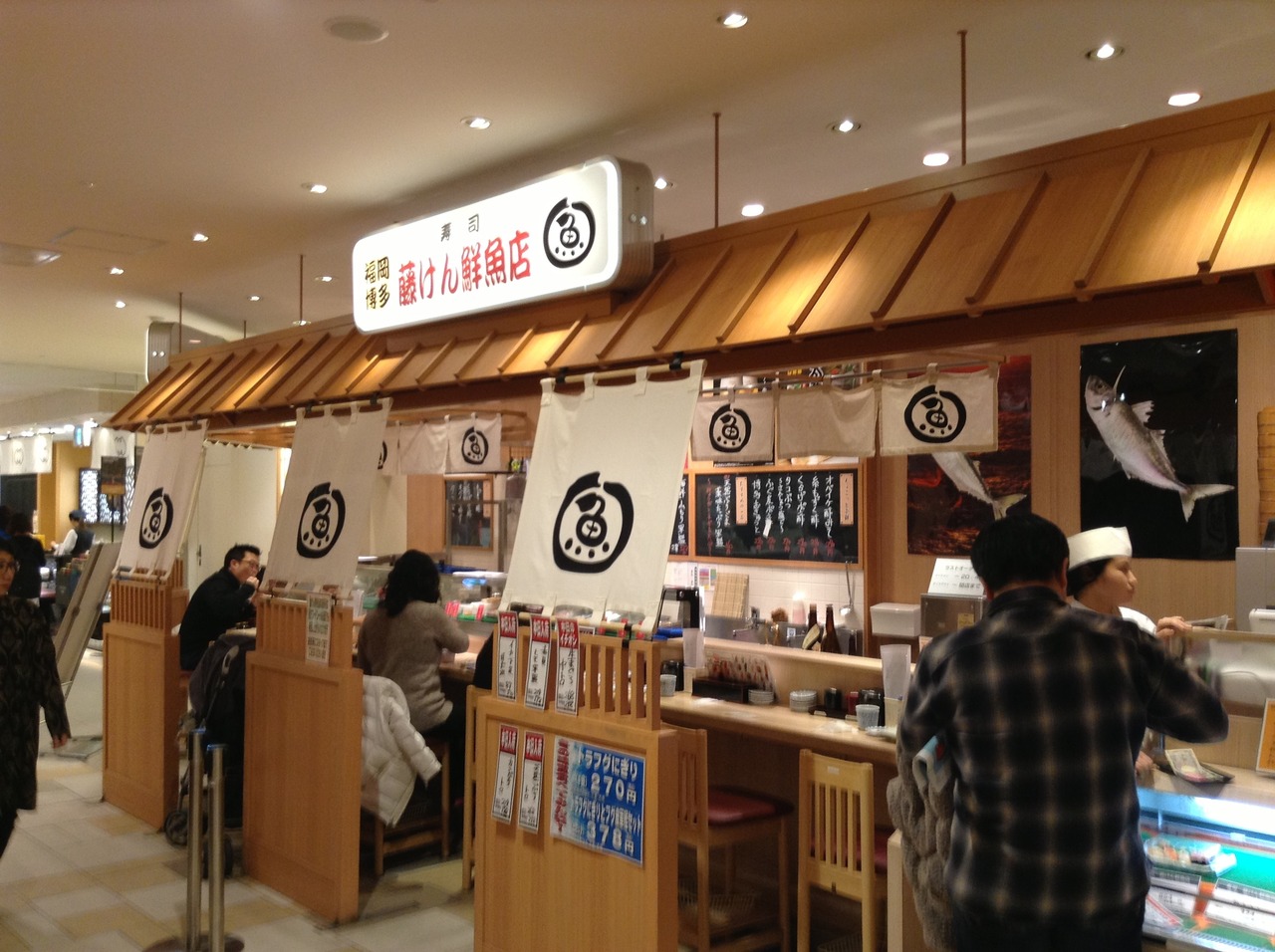 藤けん寿司は、博多阪急の地下食品売り場にあるお寿司屋さんです。デパ地下ですが、一個87円からで、ネタも結構豊富です。