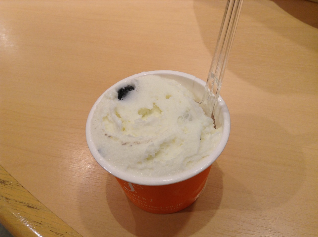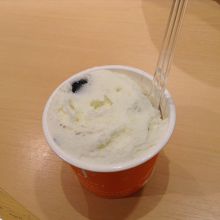 店名の通り、天井から大きなりんごがぶら下がっていて、その下にあるテーブルでイートインができます。買い物に疲れた時にジュースとジェラートが良いです。黒豆入りバニラのジェラート美味しかったです。