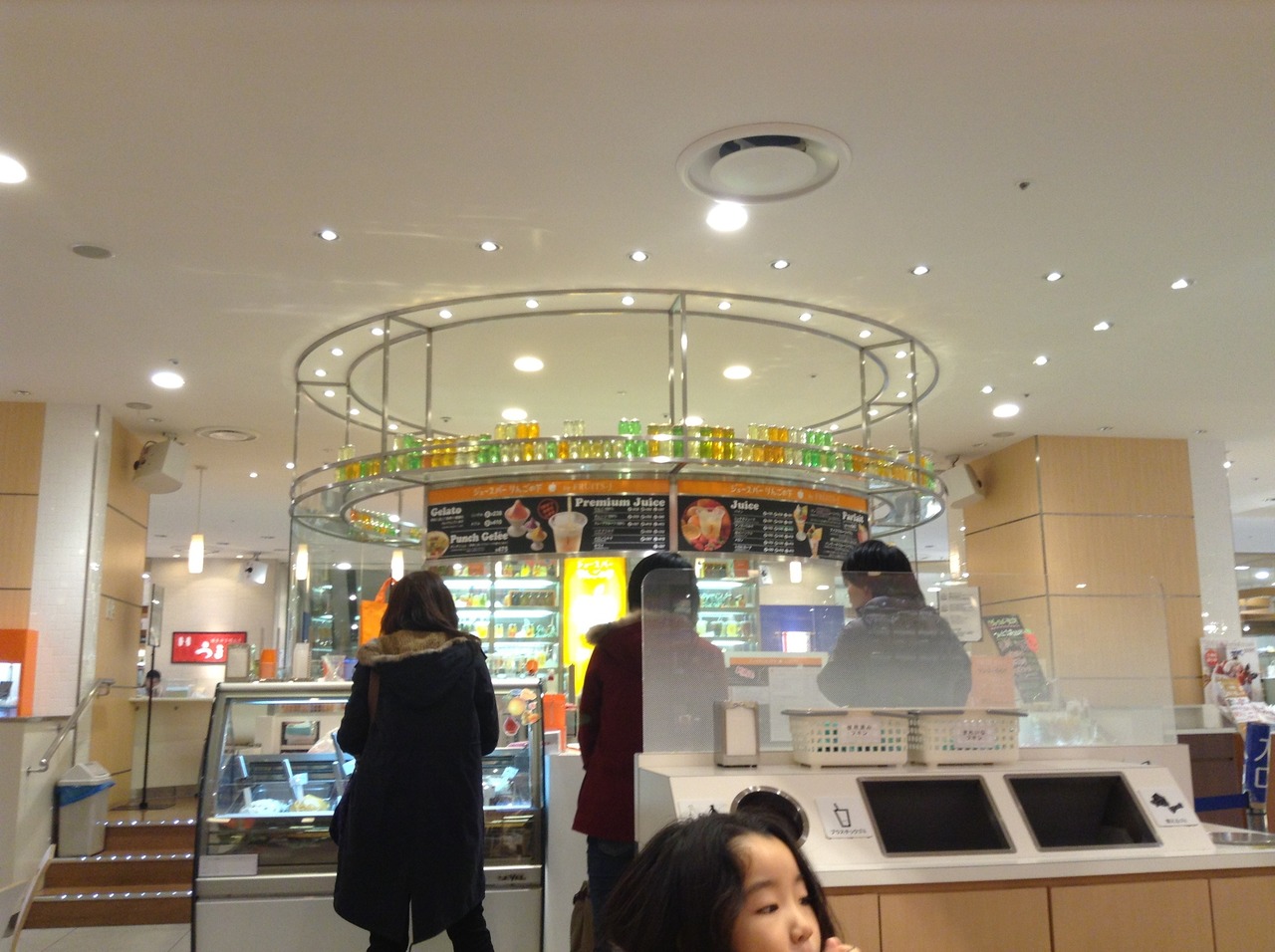 りんごの下は、博多阪急の地下商店街にあるフレッシュジュースとジェラートのお店です。