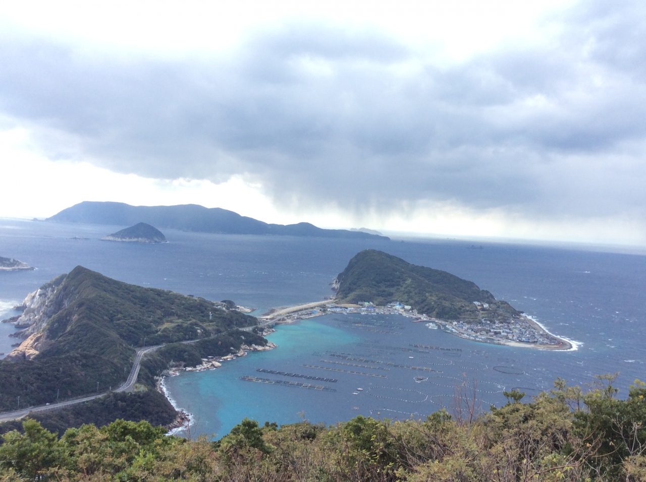 大堂海岸方面、柏島の海の青さ、養殖いかだなどがよく見えます。