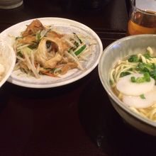 沖縄料理のお店で、1号店と2号店が並んでます。1号店は食券制のカウンター席のみのお店で、メニューは沖縄そばが主体でした。こちらの2号店は1階と2階にテーブル席があり、居酒屋のような雰囲気で、メニューは沖縄そばや定食だけでなく、お酒のおつまみになるものも揃っていました。沖縄そばが付いた定食を注文しましたが、思っていたよりもボリュームはなく、女性でも食べられる量でした。沖縄そばのスープはちょっと塩気が強く感じました。