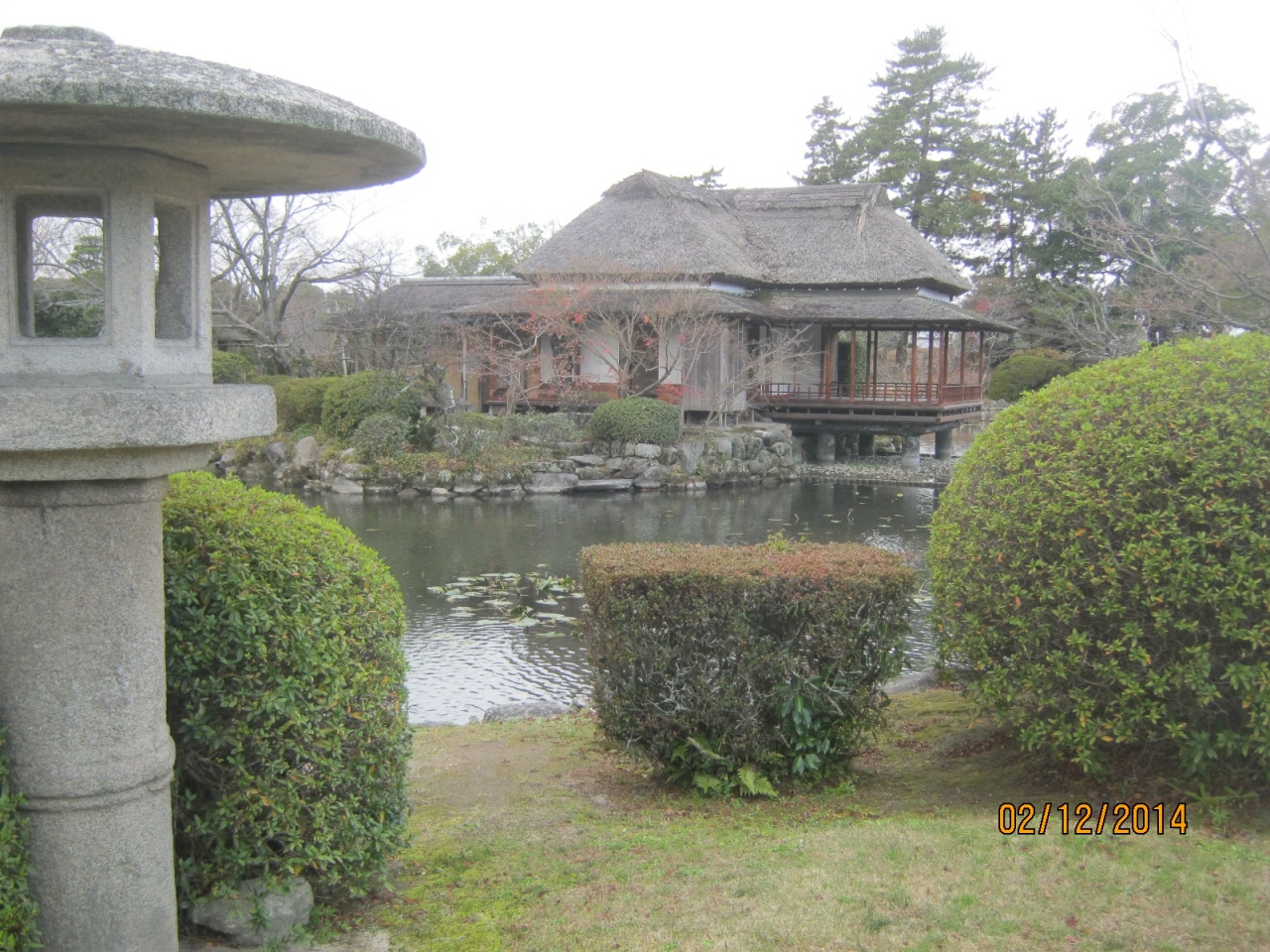 今は神野公園と言われています。佐賀駅から北西に30分程度かかります。もと鍋島藩の別邸の中の池の中島に造られたお茶室です。玄関もあり茶室部屋からは池も眺められ景観的にも素晴らしいものです。かつては迎賓館的な使い方をされたようです。池の奥に見らる隔林亭は優雅です。