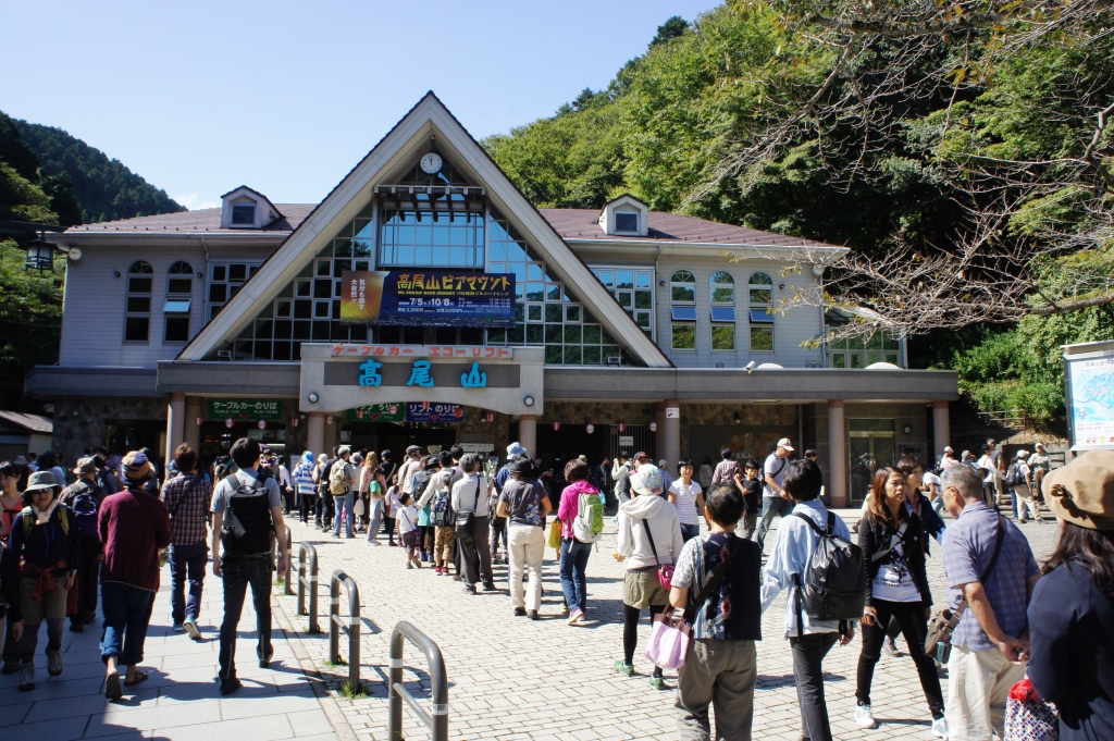 長い長い行列を見たとき、えーい面倒だと自力による登山を選びました。高尾山登山のことです。高尾山の駅を通り、ケーブルカー、リフトともにものすごい列なのです。10月の好天の日のことだから、正直、仕方ないと思いました。もっとも、歩き始めて5、6分で判断ミスかと後悔しましたけどね。何せ、ものすごい急坂なのです。古くからの山道なら負担を与えないよう、回り込んでいるものなのですが、こちらは修験者のための道。少々、つらくったって、むしろ鍛錬のためにはいいかも。だからこそのケーブルカー、リフトだったんですね。ケーブルカーだと高低差270メートルをわずか6分で到達してしまいます。山上の駅周辺でベビーカーを押すハイヒールの若いママらを見かけて驚きましたが、ケーブルカーだと問題ないですもんね。山頂に近づくと、ごった返す登山客の数にさらにびっくりしましたが、これだけ手軽に登れれば当然ですよね。