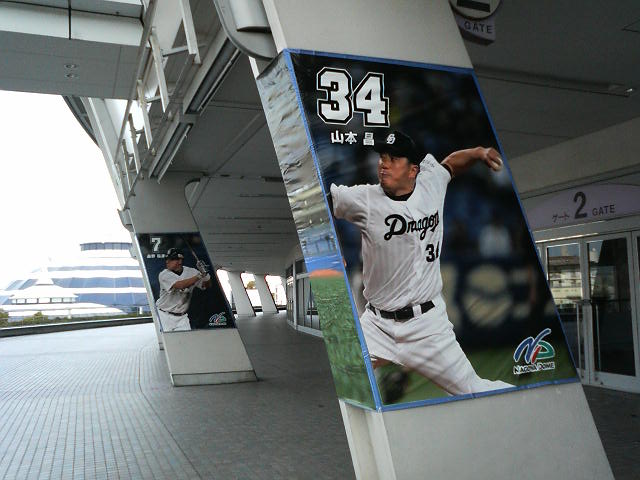 建物の柱にはドラゴンズ選手の活躍する姿が貼られていたり、球団マスコットのドアラなどが球場のあちこちに描かれていたりと、試合開始前でもいろいろ見どころがあり、早く到着してもファンの方なら存分に楽しめると思います。