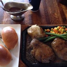 ハンバーグはジューシーで価格もお手頃、ランチにはオススメです。