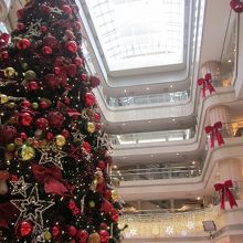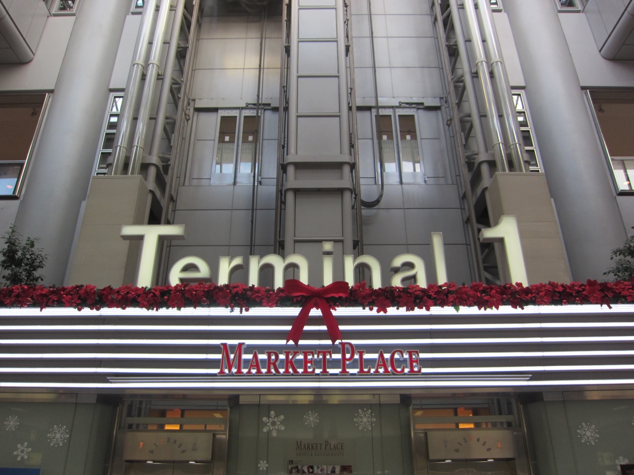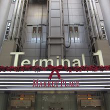 羽田空港第一ターミナルはクリスマス時期、JALカラーの赤色に染まります。