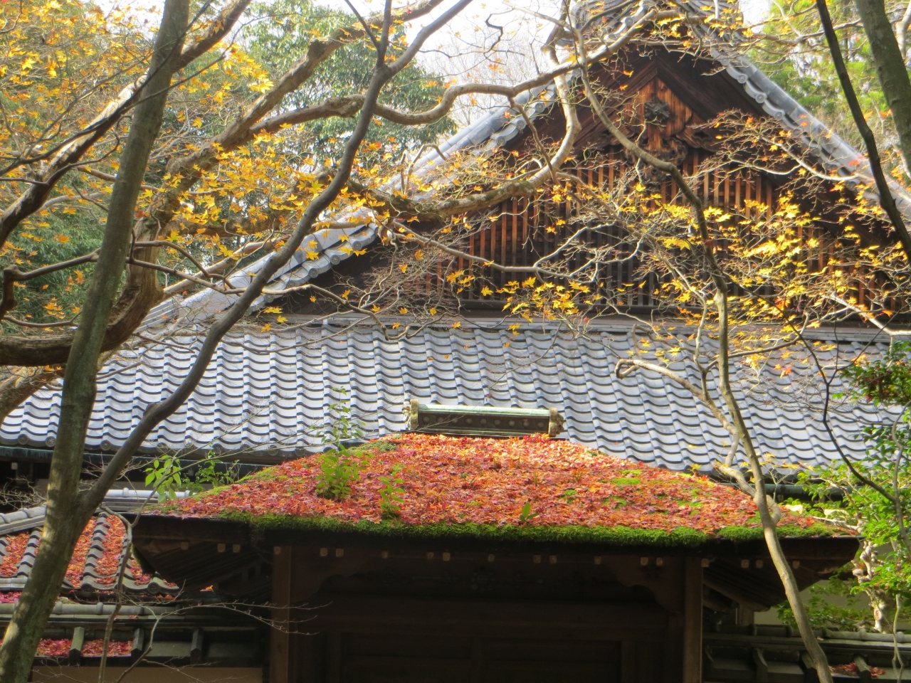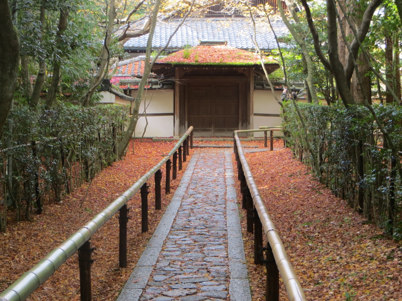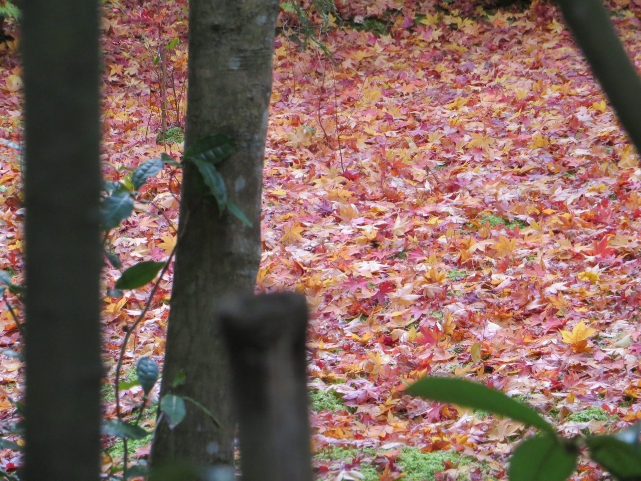 12月頭、晩秋の高桐院を訪れました。もう紅葉は終わっってしまったかと、あまり期待しないで行ったのですが、参道の苔の上には落ち葉が敷き詰められていてとても綺麗でした。もはや木々には葉がほとんど残っていませんでした。秋の終わり、冬の近づきを感じました。