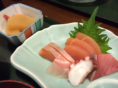 刺身定食 1280円とカキフライを単品でオーダーしました。
