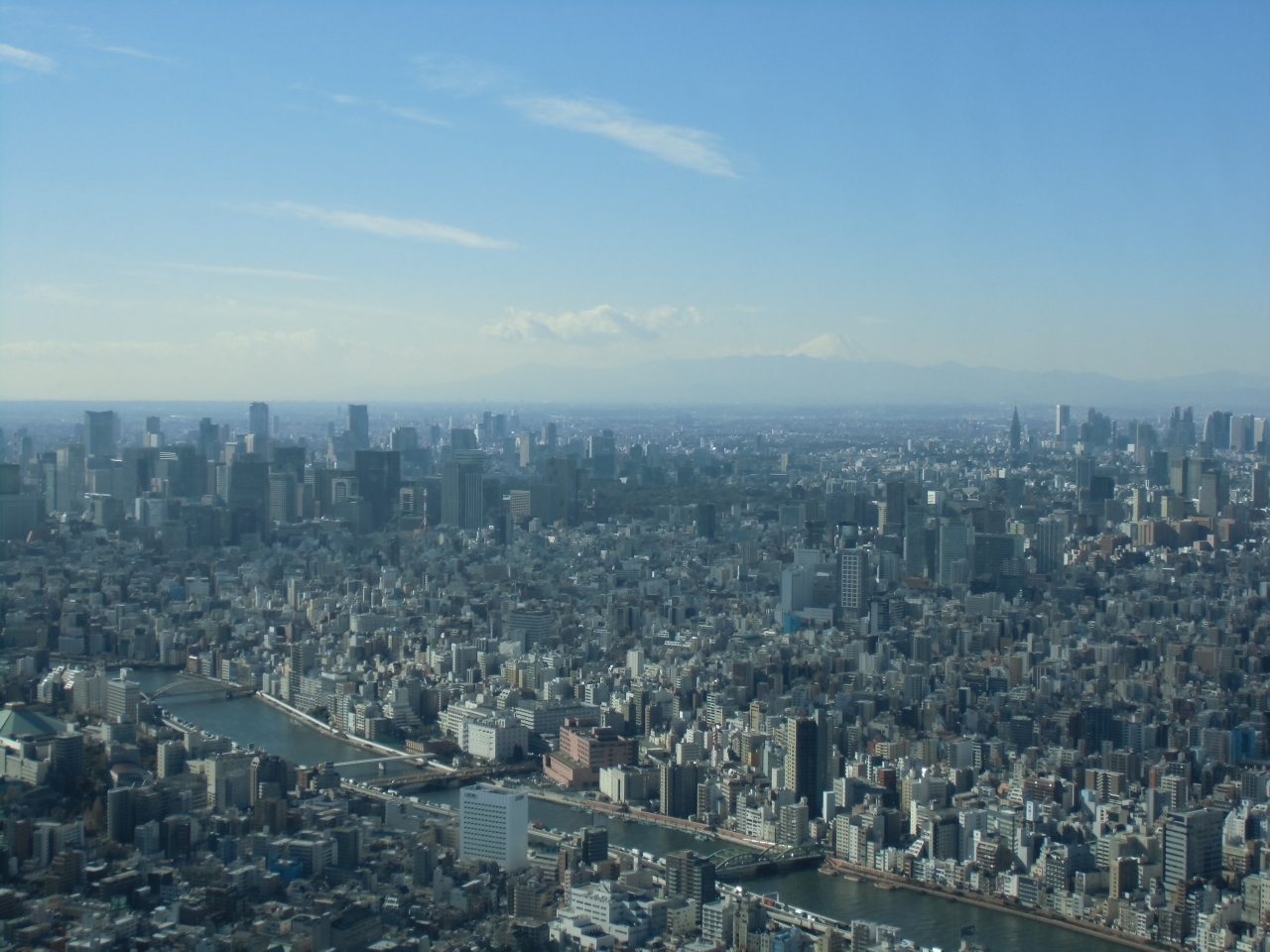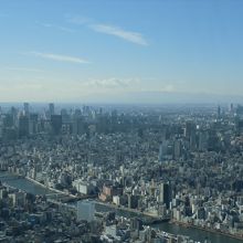 350メートルのスカイツリー展望デッキでは、遠く富士山も望めて最高でした。