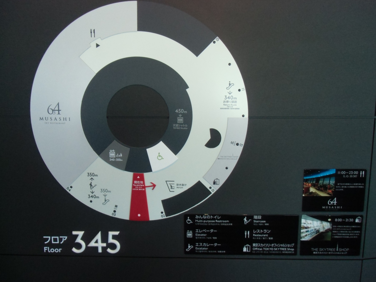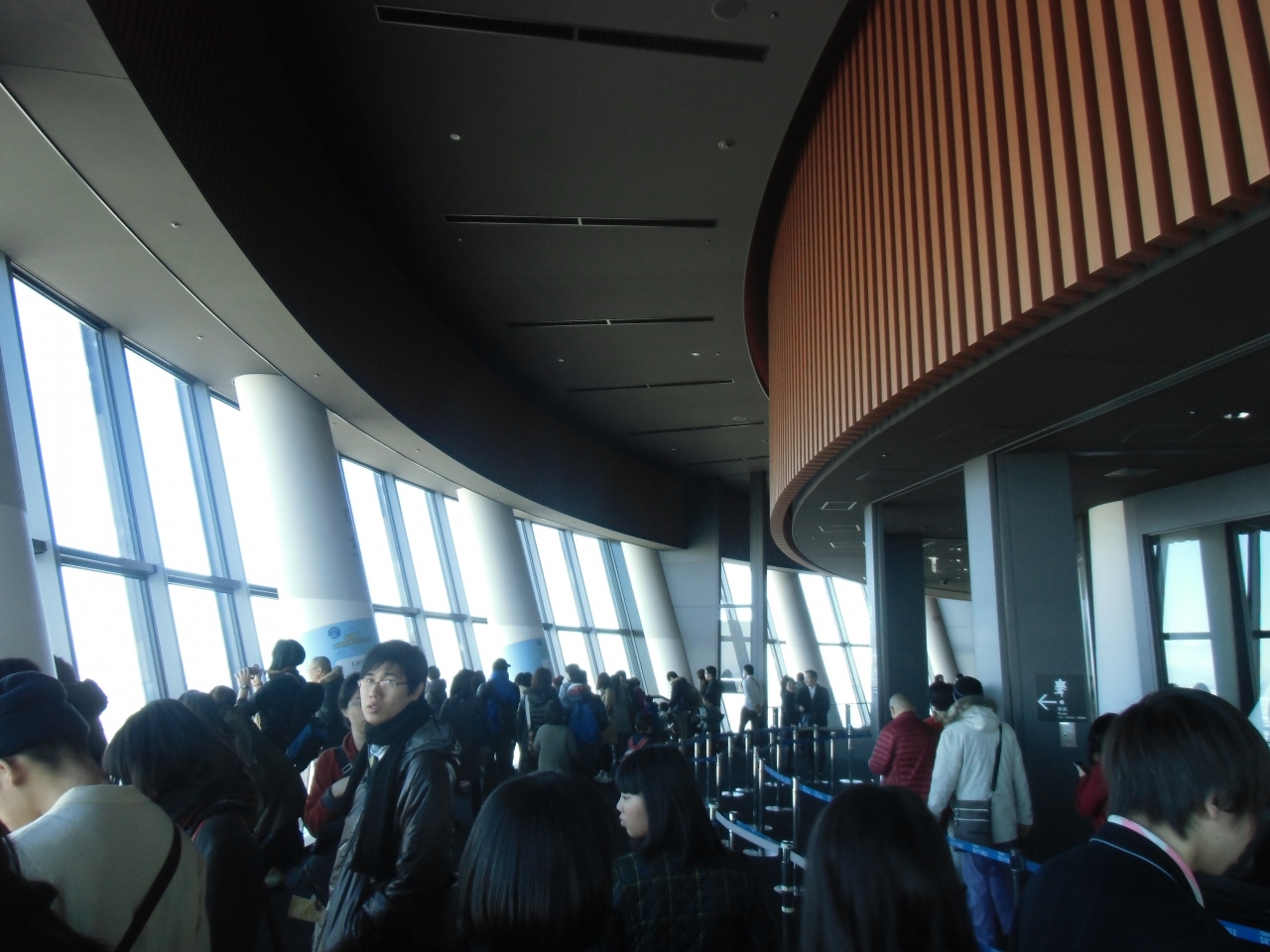 開業して時間も経ち、また年末でもあったので、混雑もなくてスムーズに行けました。エレベーターも、待ち時間は全くなしでした。エレベーターは、4基あるようで、そのうち、春と冬に乗ることが出来ました。まったく揺れの無い快適なエレベーターにも驚きです。