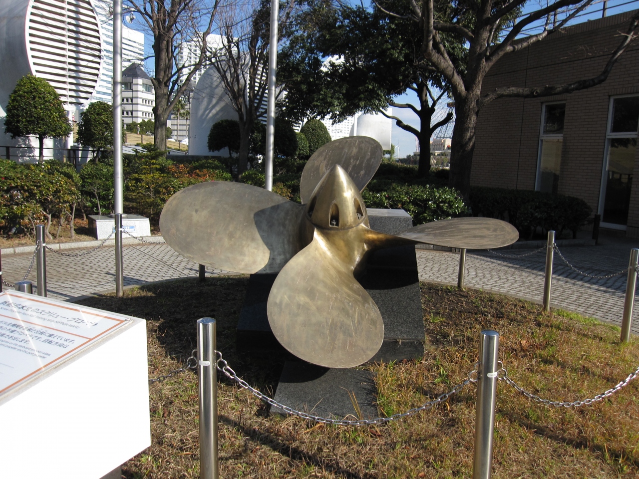 日本丸メモリアルパークの一角に展示されているのですが、帆船日本丸記念財団訓練センターの敷地なので、なんというかいまいちわかりにくい場所です。