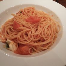 何種類かのパスタとサラダ、飲み物、ハーフサイズのケーキがついてくる。