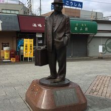 駅前の広場に立っている寅さんとは、訪れた人は誰でも記念写真を撮ります。