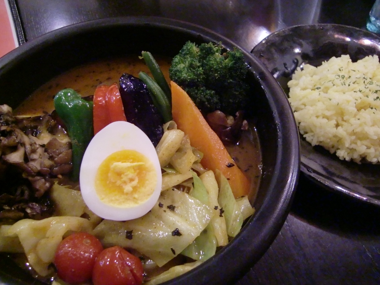 野菜スープカレーに追加代金でエビスープに。