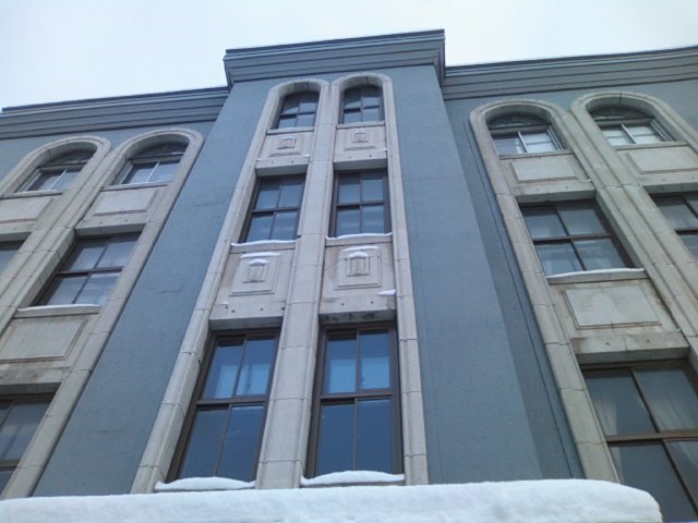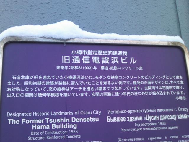 ここは小樽運河の観光拠点となっているエリアのすぐ近くにある小樽市指定の歴史的建造物の一つですが、場所柄、ここのすぐ近くに観光バスが停車して、観光客が大挙して押し寄せていることが多いです。私の訪問時も、折悪く台湾人観光客の団体が大挙して流れ込んでいて、雪に慣れていない台湾の方々が危なげな足取りで歩いていて、この建物の前が渋滞していて、誰かが転倒する度に悲鳴とも歓喜とも取れる声が発せられていて、それはそれで冬季の小樽らしからぬ楽しげな風景でしたが、歴史的建造物の風情を味わう雰囲気では全くありませんでした。故に特に冬季には、観光バスの動向には注意が必要なスポットかと思います。